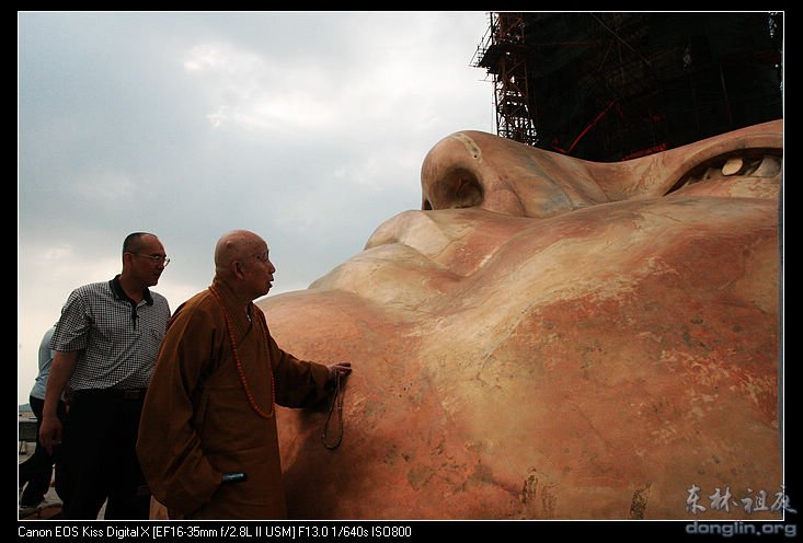 传印大和尚对大佛的建设进展情况非常关心,在侍者性然法师的陪同下,从昌北机场回寺院的途中首先来到大佛工地。在东林大佛工程建设指挥部同仁的陪同下,老和尚深入细致地查看了中轴线现场、大佛像佛首脸部、宝盖基础、东林寺下院和闭关房的规划建设地址等工程。传老看到中轴线各项工程全面展开,工程进展变化显著,感到十分欣慰。
