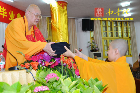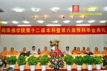 2011年6月3日,福建闽南佛学院第十二届本科暨第六届预科毕业典礼在南普陀寺讲堂隆重举行。中国佛教协会副会长、闽南佛学院院长圣辉法师,厦门市佛教协会会长、南普陀寺方丈则悟法师,研究生导师济群法师,南普陀慈善会常务副会长慧然法师,闽院副院长法源法师、副院长兼教务长传明法师、副院长兼办公室主任净心法师、教导长达源法师等闽院各部门领导以及任课法师、老师和全体学僧出席了毕业典礼。此外,厦门市民宗局蔡永华副局长、黄镇辉处长也应邀参加典礼。典礼仪式由闽院常务副院长界象法师主持。