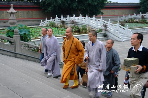 2011年6月13日下午,江西云居山真如寺方丈纯闻法师带领法师、居士一行30余人到峨眉山大佛禅院,开始峨眉山朝圣之旅。