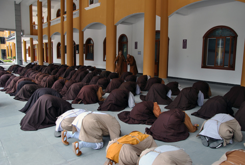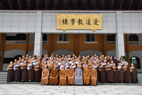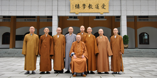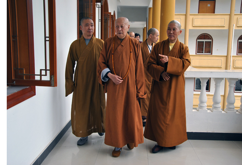 6月3日,天童寺首座修祥老和尚莅临慈云佛学院,在学院院长了藏法师、副院长显德法师的陪同下,参观了学院的大殿,教学楼,图书馆,讲经堂,诵戒堂等处。在两位院长热诚详尽的介绍之下,老和尚对学院如今的规模欣慰至极。数十年来,老和尚一直关注着慈云佛学院的成长并对学院的创办给予了极大的帮助。午斋过后,全院师生在教学楼下,聆听了老和尚开示。老和尚朴实恳切的开示,淋漓尽致地体现了一位老修行人对于年轻僧众的关爱与期望,令师生们倍感亲切和鼓舞。