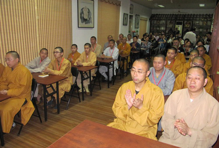 2011年6月4日下午6时,“崇恩书苑”佛学班在松江区西林禅寺崇恩教室隆重举行开学典礼。区佛教协会会长、西林禅寺方丈悟端法师;上海市龙华寺堂主世炫法师;松江区佛教协会副会长、福田寺监院明非法师;区佛教协会副会长陆春彪、李国庆;区佛教协会副秘书长能慈法师、达平法师出席典礼。此次开学典礼由区佛协秘书长圣慧法师主持,在庄严简短的仪式中,揭开了“崇恩书苑”佛学班开学的序幕。参加此次“崇恩书苑”佛学班的学员有来自松江资庆寺、化城安养禅院、西林禅寺的法师15名,居士学员28名,平均年龄30岁,具有大专、本科以上的占三分之一。
