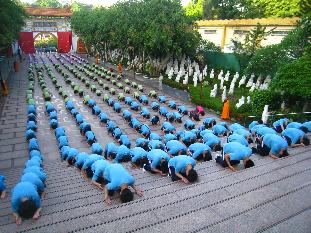 台普门中学340位毕业生“感恩朝山之旅” 三步一拜