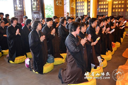 6月22日上午,香港福慧精舍众佛弟子,在峨眉山报国寺普贤殿举行佛事,设上堂斋一筵供佛及全山僧众。