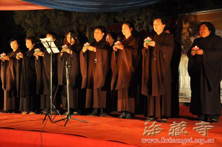 2011年5月24日晚,是甘肃武威海藏寺第三届水陆法会的第一天,为了弘扬佛教文化,促进社会和谐,营造浓厚的佛教文化氛围,甘肃武威海藏寺和凉州民间艺术团联合举办了第二届“菩提之缘”佛教文艺晚会。武威市委统战部、市民族宗教局的领导以及区委统战部、区民族宗教局领导应邀出席晚会,海藏寺方丈道安法师、首座理戒法师以及来自省内外的法师和信众一同观看了文艺演出。