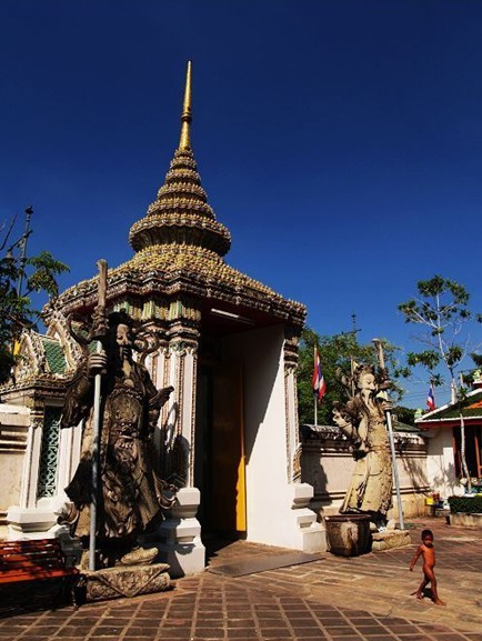 卧佛寺(亦称菩提寺)紧邻曼谷玉佛寺,始建于一七九三年泰皇拉玛一世建都时期,是泰国最古老、最大的寺庙,供奉泰国最大的卧佛、最多的佛像和佛塔,仅去年就有一百二十万人次游客。