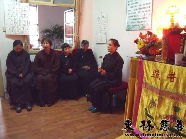 老人最大的优点是对于东林慈善的信任、依恋与配合,对于东林慈善莲友对其进行的佛法引导从不从怀疑和分辨。也许老人并没有真正搞明白莲友所讲的佛法奥理,但就因为是东林慈善的莲友告诉他的,他就绝对相信和依从,因此老人一住进安养院,就迅速地开始念佛求生净土,助念团成员每天定时进房间陪老人念佛,平常莲友们也随时陪其念佛。临终前一天,老人四大分离现象表现强烈,时不时在床上翻滚,嘴里也有血样脓液吐出,但是老人依然能坚持随众念佛,并及时求受了三皈依,受皈依时能跟随皈依老师把忏悔偈语和三皈依文说得清楚分明,感动了在场的莲友们。