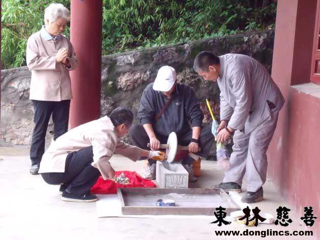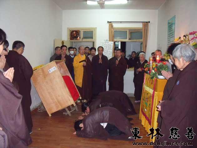 东林慈善成员便是廖小阳居士的儿女,全体莲友对其进行轮流跪拜
