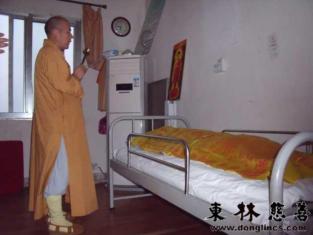 2011年5月22日19:00,为其擦洗身体,并换上由安养院莲友发心为其购买的衣服。20:00由东林慈善功德会会长镜义法师主持装龛仪式,由在场的所有莲友充当亲属,一一为其行跪拜礼。