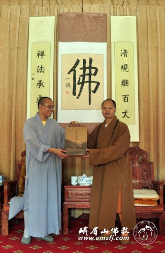 纯闻法师向参学团赠送真如寺珍贵的禅茶