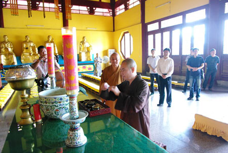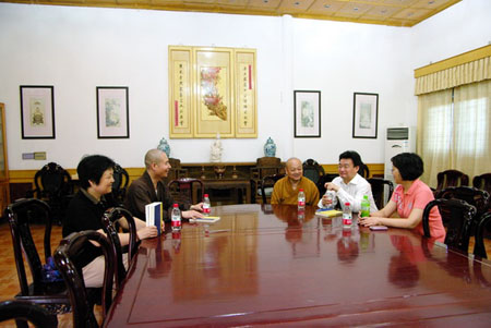 湖北讯 2011年6月19日,安徽安庆市佛协会长、天柱山三祖寺住持宽容法师,安庆市及潜山县政府领导到湖北黄梅四祖寺参访,受到四祖寺首座普显法师、监院崇谛法师及知客崇顿法师等常住法师热情接待。