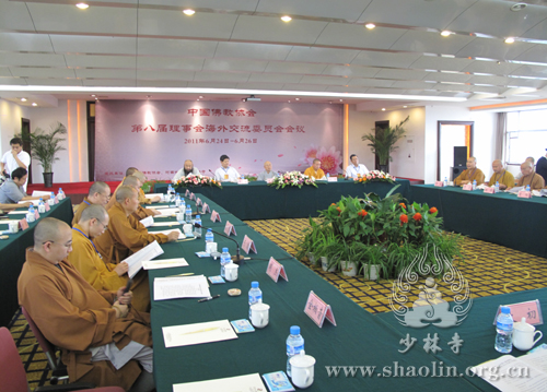 2011年6月25日,中国佛教协会第八届理事会海外交流委员会会议在少林寺圆满召开。会议通过了《中国佛教协会第八届理事会海外交流委员会工作规则(草案)》、《中国佛教协会第八届理事会海外交流委员会2010年工作报告(草案)》、《中国佛教协会第八届理事会海外交流委员会2011~2014年工作计划》。出席本次会议的嘉宾及代表有:中国佛教协会会长传印长老、中国佛教协会副会长、少林寺方丈释永信、中国佛教协会秘书长王健、国家宗教事务局外事司司长郭伟、河南省宗教局副局长王宏文及中国佛教协会、河南省佛教协会的高僧大德等。