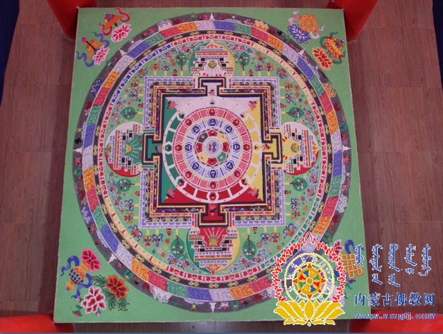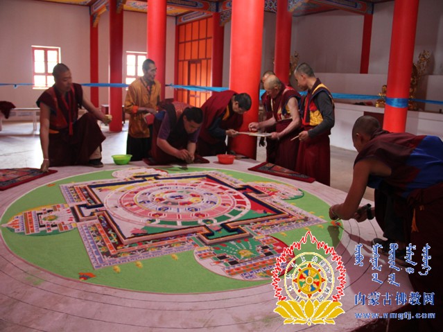 目前正是广宗寺举行夏季大法会时间,新经堂内举行胜乐金刚彩沙坛城的盛大修供仪轨,寺主贾拉森活佛和众僧诵经加持,施主和观光客称赞它宏伟而漂亮。