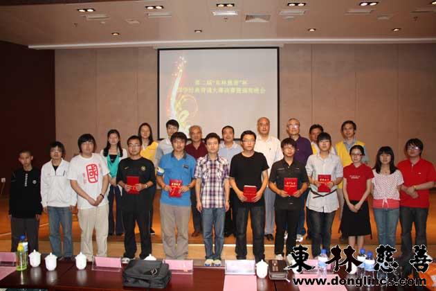 李开教授在发言中极高的评价了东林慈善功德会和南京大学国学社组织的活动,七十高龄的他激动的表示东林慈善资助的经典背诵“是挽救国学的一种义举,甚至壮举”。随后本次比赛的评委代表、南京师范大学国学社社长隋琪发言,对参赛选手的精彩表现给予了充分肯定,尤其赞扬了在比赛中表现优异的理工科专业的学生。在全体观众热烈的掌声中,各位嘉宾为获奖选手颁奖,本次活动获得圆满成功。