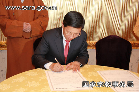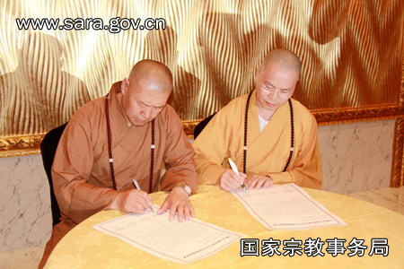 中国五台山向加国五台山捐赠佛像意向书签字仪式举行