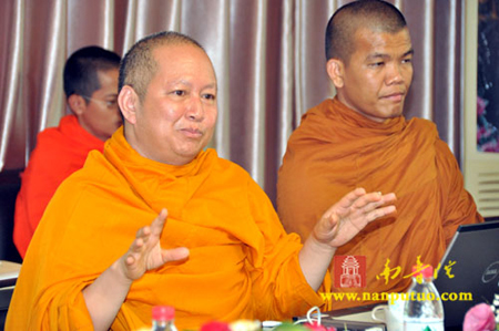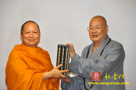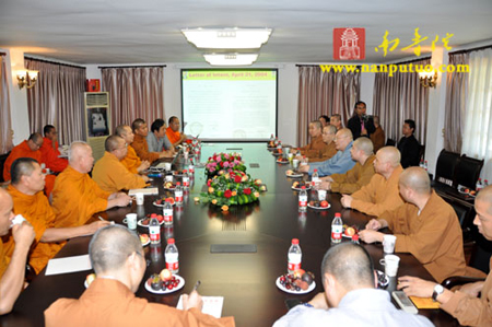 下午2时40分,闽南佛学院院长圣辉法师率学院主要领导与泰国摩诃朱拉隆功大学达摩·孔莎瞻校长一行12人在市佛协会议室进行座谈交流。首先圣辉法师对中泰两国佛教界近几年来的友好合作交流作了总结回顾,并对两国佛教界未来的办学质量、持续发展作了展望。