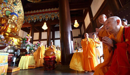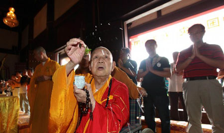 2011年7月15日,海南三亚佛教界在三亚市南山寺举行纪念建党90周年的“佑我中华、护国息灾”祈福法会,发扬爱国爱教的精神,祈愿祖国繁荣昌盛、国泰民安。