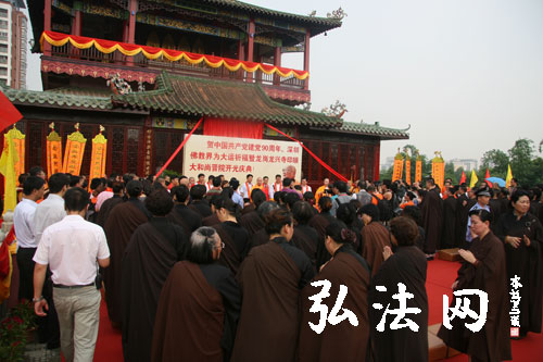 适逢中国共产党建党90周年,第二十六届世界大学生运动会即将在深圳开幕。为了庆祝中国共产党成立90周年,祈祷国家富强,社会和谐,大众安乐,风调雨顺;同时用自己独特的方式表达深圳佛教界人士祝福大运会圆满吉祥的美好愿望,在龙岗龙兴寺移交之际,深圳佛教界特别举办了这场“庆祝中国共产党建党90周年,深圳佛教界为大运会祈福暨龙岗龙兴寺印顺大和尚晋院佛像开光庆典”活动。至上午十一时,活动功德圆满。诸佛生欢喜,龙天降吉祥。