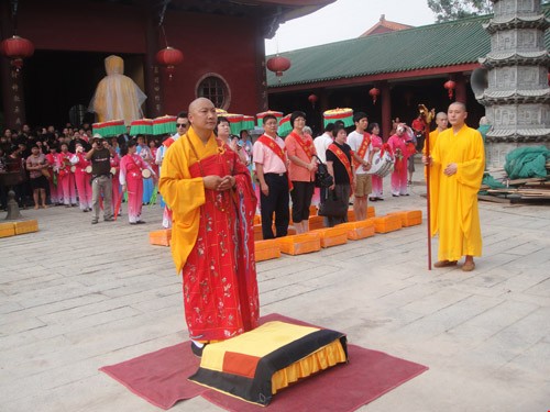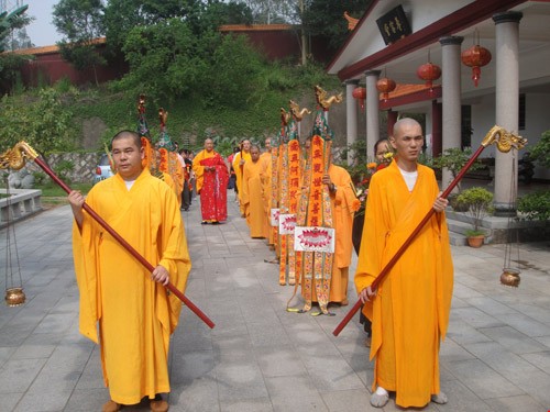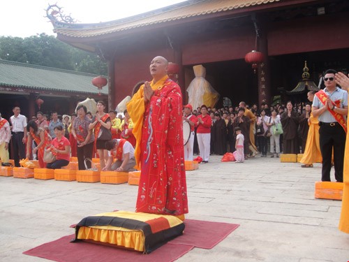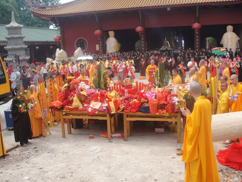 7月7日上午9时,厦门同安区梵天寺隆重举行大雄宝殿重建上梁仪式。仪式上,梵天寺负责人仁慈法师主法,手执杨枝净水,遍洒道场。法师们恭诵般若心经等经,并由仁慈法师宣读上梁法语,祈愿世界和平,国泰民安,风调雨顺,海众安和。重建后的大雄宝殿占地面积980多平方米,全部由进口的非洲红花犁木建造。(图文:梵天寺)