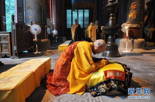 继云长老带领灵隐寺僧人为妞妞诵经祈福
