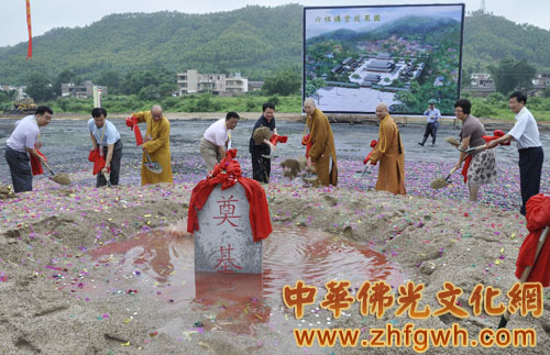 2011年6月30日上午,广东韶关“大南华”建设重点工程之一“六祖讲堂”开工奠基仪式在禅宗祖庭、六祖道场南华禅寺隆重举行。中国佛教协会副会长、广东省佛教协会会长、光孝寺方丈明生法师,广东省佛教协会副会长、韶关市佛教协会会长、南华寺方丈传正法师,广东省佛教协会常务副会长、顺德宝林寺方丈宏满法师,广东省佛教协会副会长、云门寺方丈明向法师,韶关市市委书记郑振涛、市人大常务副主任李石保、副市长兰茵、市政协副主席赵志发,韶关曲江区区长吴春腾、区委副书记范国文等领导嘉宾以及南华寺两序大众共300余人参加了此次盛典。