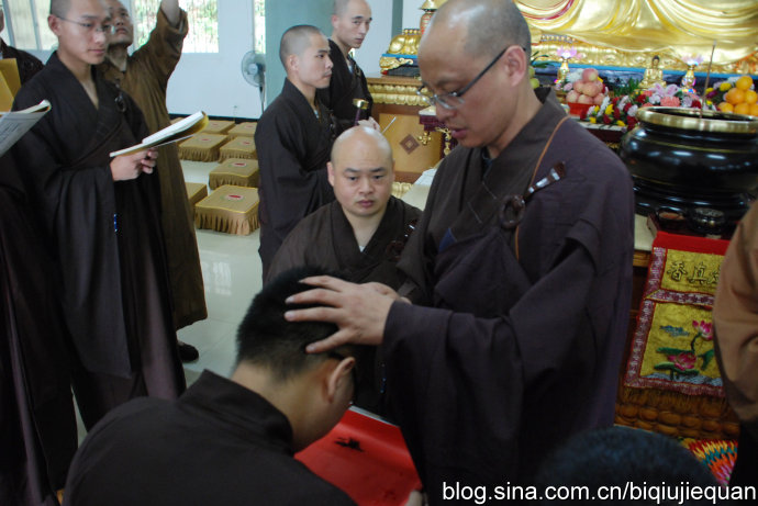 2011年7月19日,农历六月十九日,平兴寺五位净人在界诠法师座下剃发染衣。