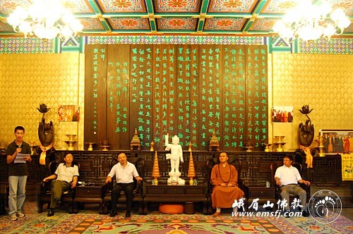 研修班一行在四川省宗教事务局副局长杨伯明、峨眉山——乐山大佛景区管委会常务副主任冯庆川等的陪同下来到峨眉山大佛禅院。峨眉山佛教协会会长永寿大和尚热情接待并举行座谈。