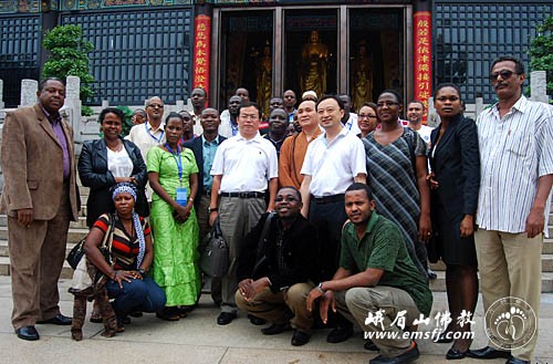 7月24日,非洲法语国家旅游管理与开发官员研修班一行24人在北京大学政府管理学院副主任张乐平的带领下到峨眉山大佛禅院参访。