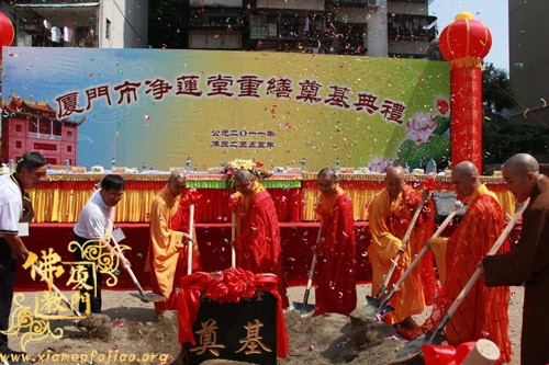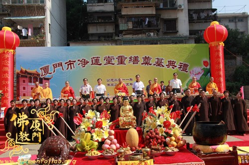 7月23日报道:今天上午9时,厦门市净莲堂举行了寺庙重缮奠基仪式。