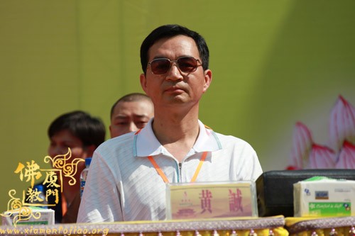 参加仪式的领导有:市政协城市建设人资委员会主任陈心田先生,市民宗局一处处长黄镇辉先生,市侨联副会长杨鸿鸣先生,思明区宗教局局长黄诚先生,思明区公园派出所所长林剑明先生,思明区街道副书记陈玉印女士,街道拆迁办副总经理张国雄先生,思明区居委会书记陈毅敏女士。
