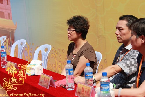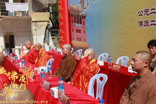 法师有:省佛协副会长、市佛协会长、南普陀寺方丈则悟大和尚,省佛协副会长、泉州承天寺方丈向愿法师,省佛协副秘书长、市佛协副会长、鸿山寺住持法云法师,漳州市佛协副会长、漳州安福禅寺住持广宗大和尚,省佛协副秘书长、市佛协副会长、闽院副院长、万石莲寺住持法源法师,市佛协副秘书长、能仁寺住持能元法师,市佛协副秘书长、太平岩寺住持世澄法师,市佛协副秘书长、思明区佛协会长、进明寺住持普端法师,思明区佛协秘书长、碧山岩寺监院月妙法师,漳州安海龙山寺住持开慈法师,净莲堂住持向成法师等。居士代表有:廖泽茹、吴国政、黄从明、张海燕、蔡明智等及厦门市各寺庙代表数百人随喜参加了奠基仪式。