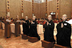 二零一一年国际佛光青年干部会议九日为两百五十位青年举办“成年礼祈福”活动,现场有国际佛光会理事、干部、会员等近百人观礼.