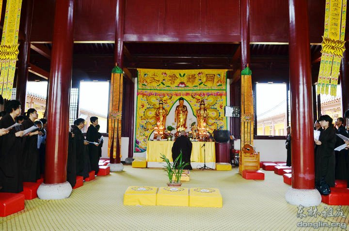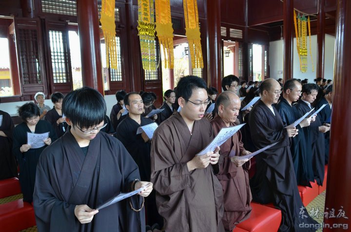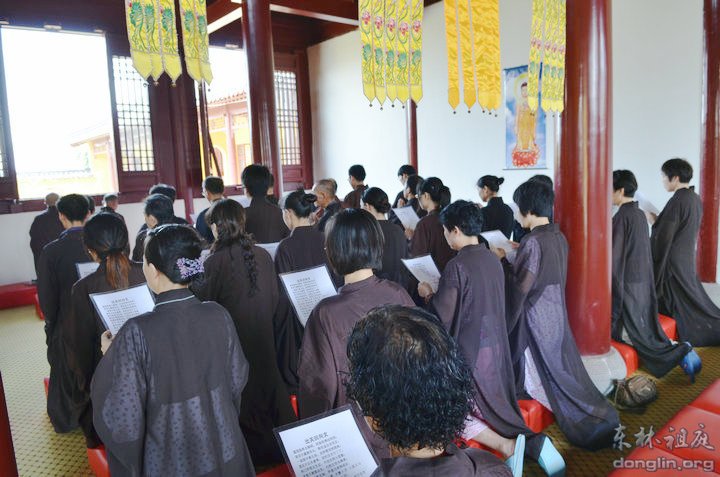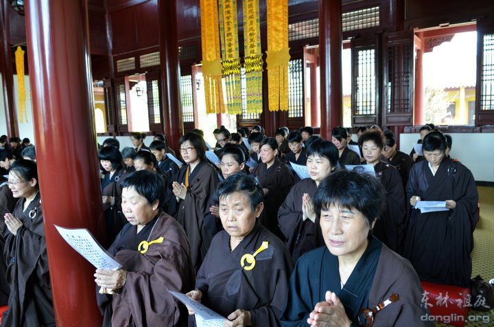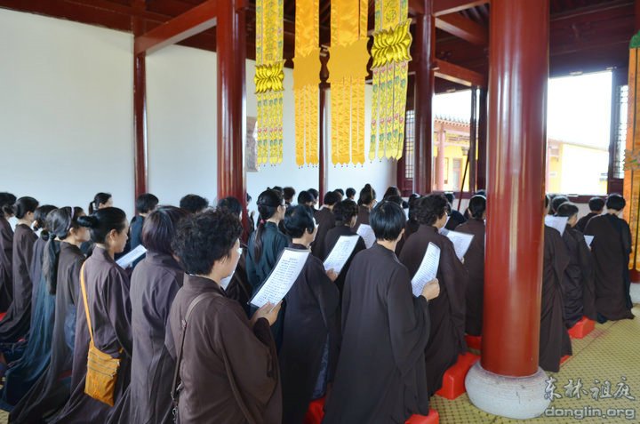 2011年7月25日下午2时整,东林祖庭7月下半月十日百万佛号闭关结束,来自东林寺及各地四众弟子80余人在东林闭关中心香光殿进行出关大回向仪式,回向仪式毕,大众就拜垫而坐,寂庵法师主持了闭关感受交流会,闭关者踊跃发言,表述闭关感受与大众分享,下午4时左右,闭关感受交流会结束,寂庵法师为大众作了总结性开示,4:30分,东林祖庭7月下半月十日百万佛号闭关共修活动圆满结束。