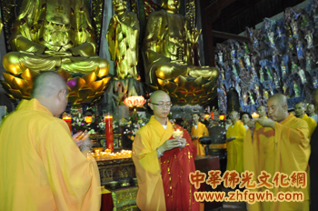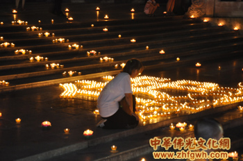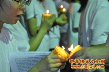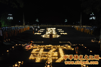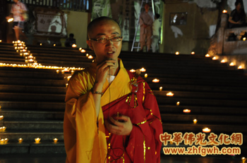 2011 年7月20日晚7 点,南华禅寺第五届“禅悦行” 夏令营活动在曹溪广场举办盛大的传灯法会,全体营员和义工及居士们在南华禅寺的法师们带领下共同参与了这次传灯法会仪式。