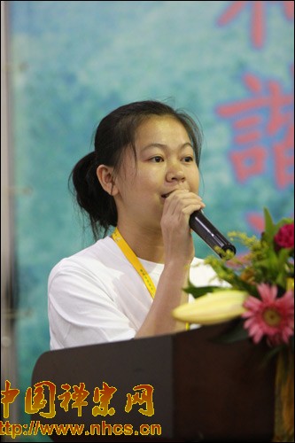营员代表、广西民族大学的刘娥代表营员作了发言,她代表营员对南华禅寺和曹溪佛学院的法师和常住表示真诚感谢,并希望与各位营员共享禅悦、开启智慧。