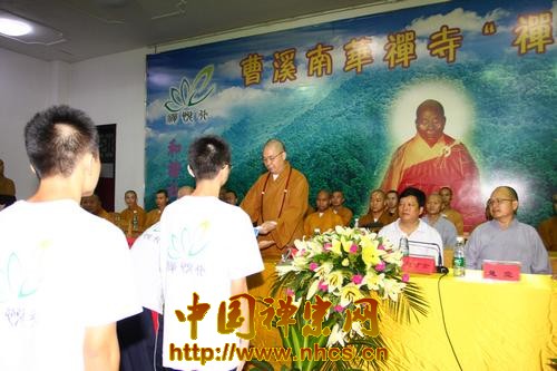 在开幕式上,传正大和尚做了重要开示。他首先从南华禅寺的开创者智药三藏讲到明代憨山法师,近代虚云法师和惟因老和尚,追溯了南华禅寺悠久的历史。接着他还从宝林山、宝林寺的名字谈到了宝林之“宝”,他说宝林之“宝”就是禅宗智慧之宝,了生脱死之宝。大和尚指出,很多营员千里迢迢从四面八方来到南华寺参加本届夏令营活动,为的是求得心理安定,其实从心态方面来说,真正是要“求菩提次第“,来了生脱死。最后大和尚开示说, “禅悦行”进行到第六天有一个心得共享活动,希望大家拿出一颗真心参加活动,获得真感,使自己心有所定,、心有所悟,最终觉悟人生、奉献人生。