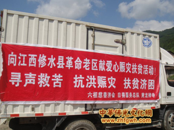 江西黄龙禅寺联合六祖慈善普济会修水灾区献爱心活动