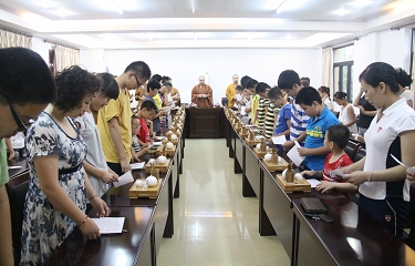 7月8日晚,2011年“智慧.心之旅”暑期体验营第一季在太仓同觉寺顺利开营。来自上海、无锡、苏州、太仓等地60多名营员与常住法师们一起,体验寺院生活,参与诵经禅修。本次体验营形式多样、内容丰富,其中禅修体验、茶道交流、弟子规力行等活动颇受欢迎。