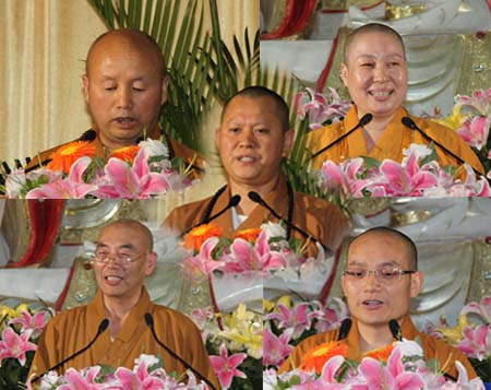 五位评委(中:清远法师 左上:澈性法师 右上:吉祥法师 左下:智超法师 右下:贤空法师)
