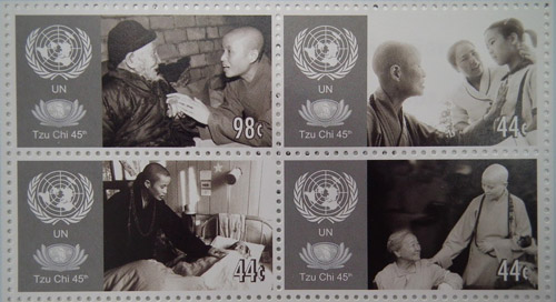 为了肯定慈济基金会在国际人道援助上的贡献,联合国邮政总局特别为慈济制作并发行“慈济四十五周年纪念邮票”首日封及邮折。前联合国秘书长安南并特别写信,感念慈济的四大志业体对实现联合国千禧年目标的诸多贡献。