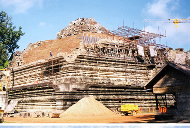 修复巴普昂寺(Baphuon,或音译巴芳寺)的工程艰巨,因为要面对雨季问题以及多年来的内战,专家在这种情况下,好不容易才把石块逐件拼回去,尽量恢复这座古庙的原貌。