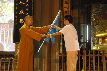 18日晚19时30分,“法门之光”福慧营开幕式在法堂隆重举行,在大众唱诵着佛经声中完成了洒净仪式,陕西省佛教协会副会长、法门寺监院、法门寺佛教学院副院长智超法师代表法门寺全体僧众和佛学院全体师生致欢迎辞。