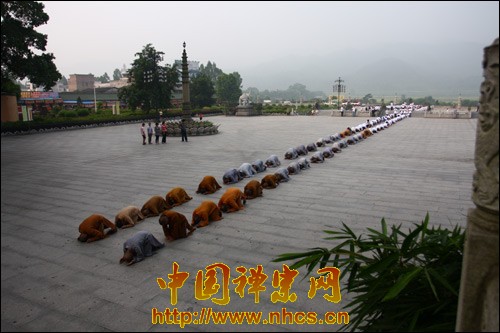 早上诵经法会结束后,宗岳法师为大家讲解了《礼拜的目的和意义》,他说以三步一拜的方式礼拜六祖,肯定会很辛苦,大家最好都坚持下来,若有坚持不下来的人,可以中途停在一边,走也走到六祖身边。以往参加过“禅悦行”活动的营员一致认为这块内容给他们留下了最为难忘的印象。他还说,忏悔作为一种修行方式,能迅速的使人认识自己,而三步一拜就是最广大意义的忏悔。