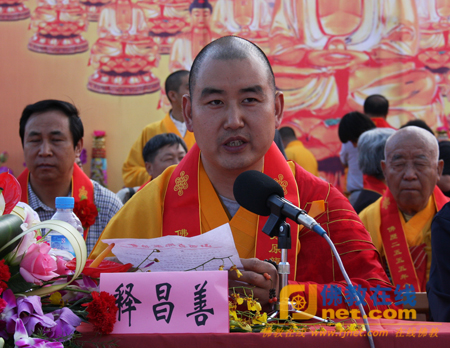 省佛教协会副会长、五台山黛螺顶住持昌善法师宣读省佛协贺信