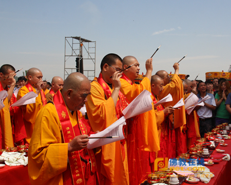 “神州大地起圣塔 佛法传承有新意”,2011年8月21日上午,山西省太原市万柏林区龙泉寺金刚万佛宝塔落成暨诸佛圣像开光法会隆重举行。