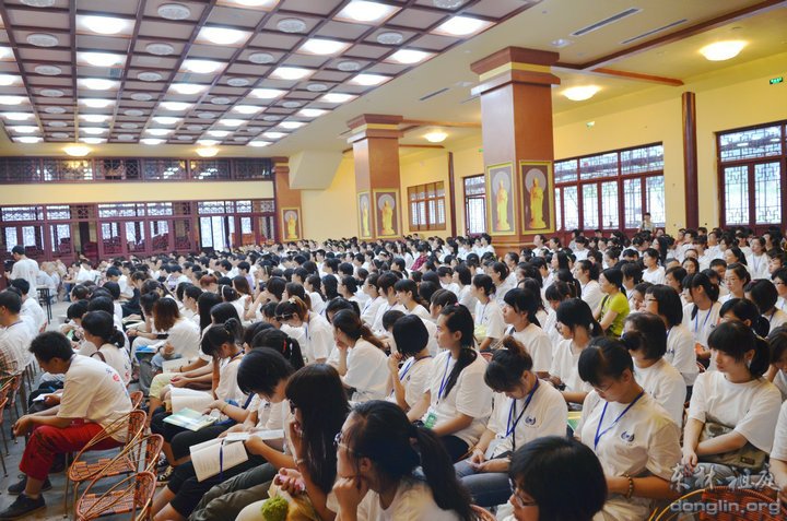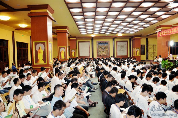 2011年8月1日晚,庐山东林寺第八届净土文化夏令营预备会议在香光讲堂召开,踊跃前来参加活动的青年才俊们,身穿洁白的营衫,列队进入会场,开始了别开生面的夏令营生活。