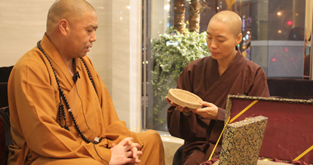 8月20日晚,灵鹫山慈善基金会董事长妙用法师代表接受这份“厚重”大礼,增勤法师也特地与大家分享择选出“秦砖”、“汉瓦”相赠宗博馆的来龙去脉。他表示,自去年八月与心道法师会晤,知道辛亥百年是世界宗教博物馆开馆十周年后,就特别委托陕西考古界的专家学者一起集思广益,想找出极具文化特色的古物相赠。因西安是历代十三个王朝建都之地,“秦砖”、“汉瓦”等于是见证中华文化发展的至宝,在同获陕西省文化局局长及历史博物馆馆长同意下,特将库存的宝贝文物,也是唯独西安才有的“秦砖”、“汉瓦”赠送给世界宗教博物馆。