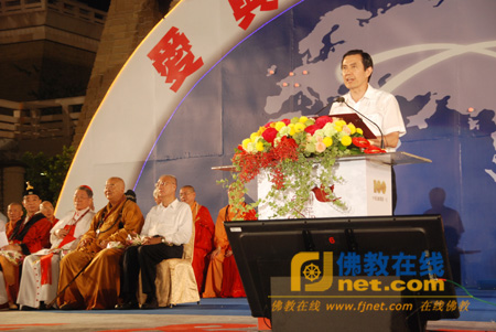 这场由国际佛光会主办的祈福音乐会吸引了逾三万海内外民众参加,马英九表示:两岸近年来在许多人的智慧与努力奔走下,签署多项协议,和平曙光重现。此外,马英九指出,台湾的宗教因为有行动入世化、组织管理企业化、信徒义工化、国际化等特质及进取、包容的传统,让台湾近年来呈现中华民族数千年来最繁荣的风貌。