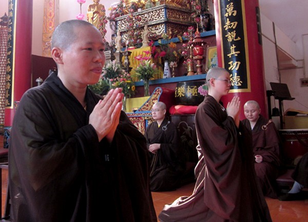 会中,恩师上人宣说自恣的意义与缘起,并做了深刻感人的开示,感恩诸位执事于夏安居期间对常住不遗余力的护持,感恩大众不辞辛劳、如法如律地参与安居共修,并期勉全体尼众广集福慧资粮,在道业上继续精进努力。随后,法师们依次出位,严肃威仪,于佛前至诚顶礼,发露忏悔,片片真心日月可鉴。大众谦卑惭愧,检举自身所犯之过,仰凭清众,垂慈诲示。弟子们无不感念恩师上人的慈悲护念,感恩法师们的开示教诲,感恩常住无微不至的关怀,并发愿在菩提大道上继续真修实干,勇往直前。