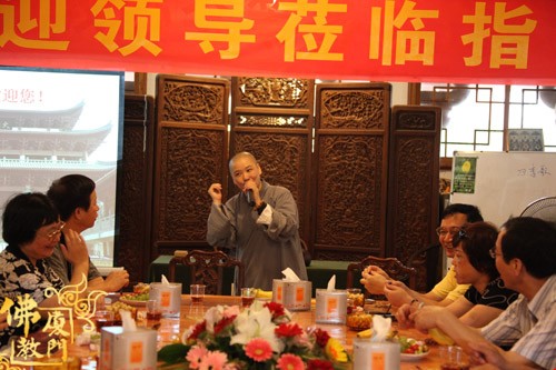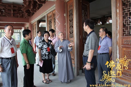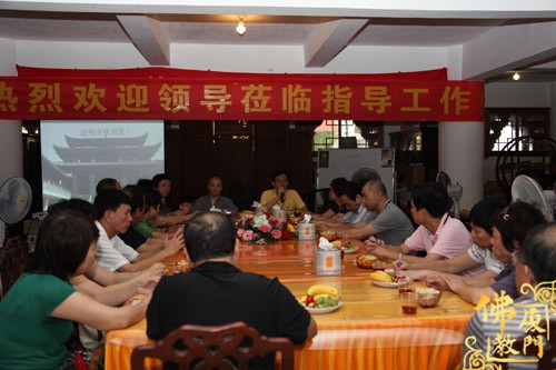 视察中,委员们听取了普端法师介绍进明寺的管理情况。自1992年普端法师受邀接管进明寺以来,除旧布新对进明寺整体进行规划重建;引导僧人和信众如法如律修学佛法;开展首次儿童学佛成长夏令营活动;在每年国际马拉松赛事举办时组织僧众、居士,备办丰盛饮料、食品为运动员们加油喝彩;带头无偿献血、帮助白血病人等热心参与各项公益事业;组织成立思明区佛教协会等,克服重重困难为厦门佛教的发展不遗余力。受到委员们的积极赞扬和肯定。随后,在普端法师的带领下,委员们参观了进明寺和思明区佛教协会办公地。