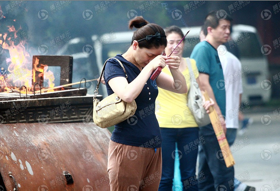胡可现身寺庙烧香 为全家人祈福